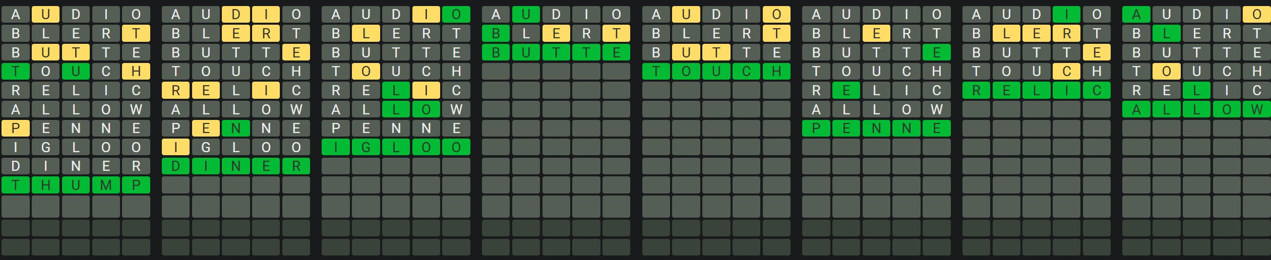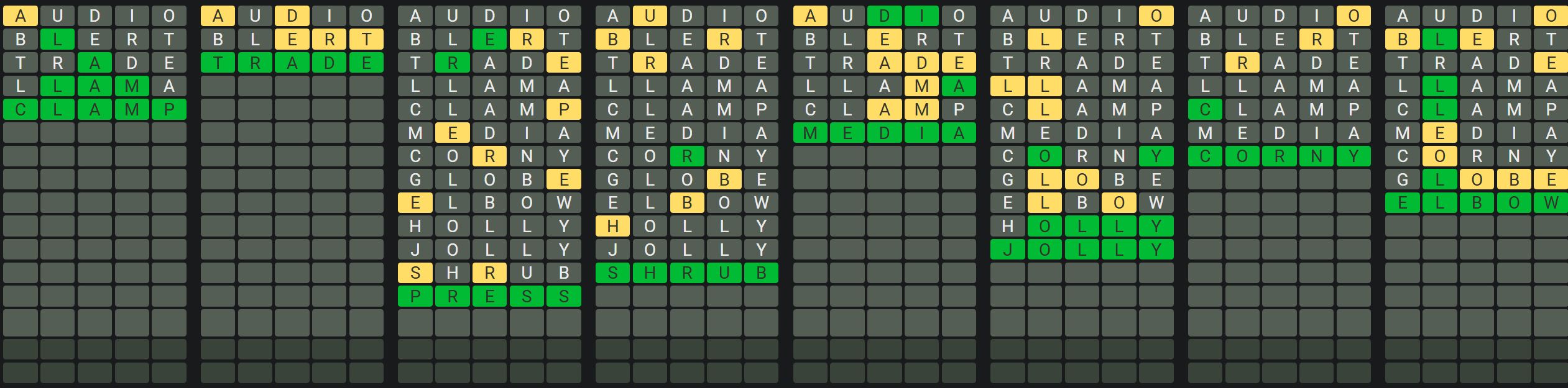 The Sequence Mode is similar to the original Octordle game with the following changes.