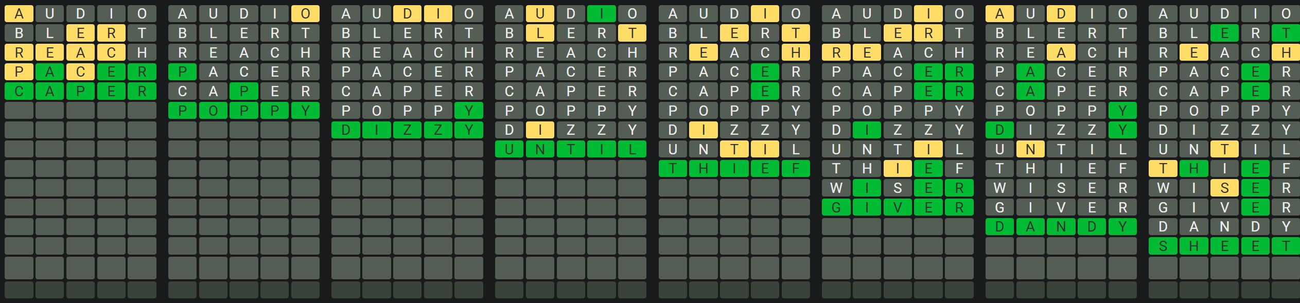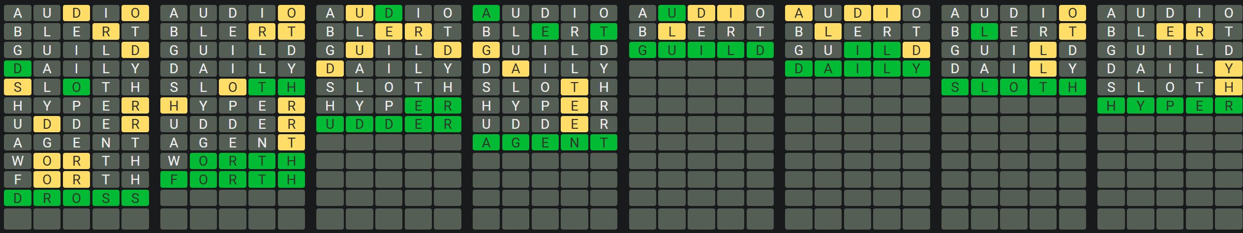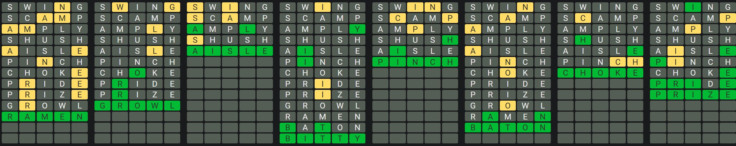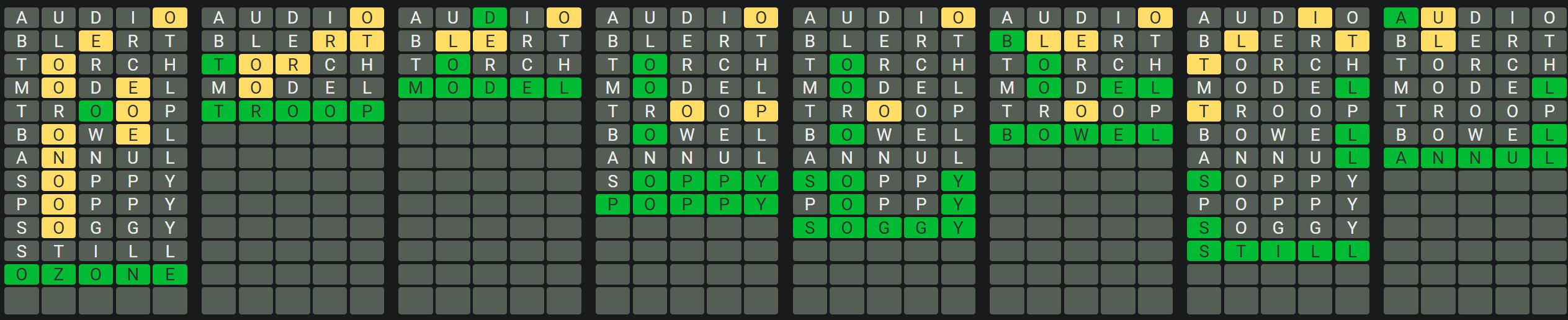 The Sequence Mode is similar to the original Octordle game with the following changes.