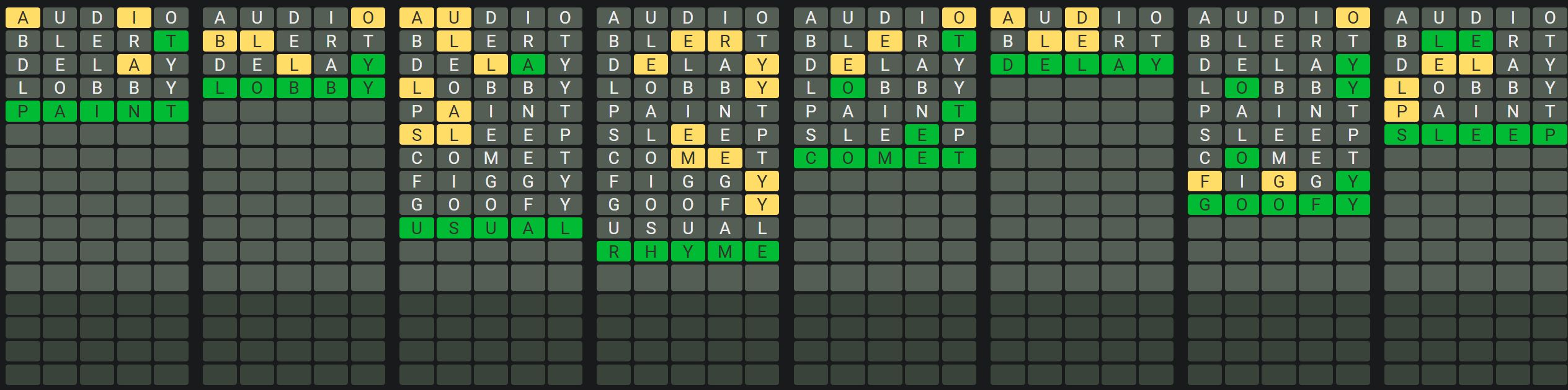- Only one unsolved word is visible at a time. Once you solve a word, the next board is unlocked.