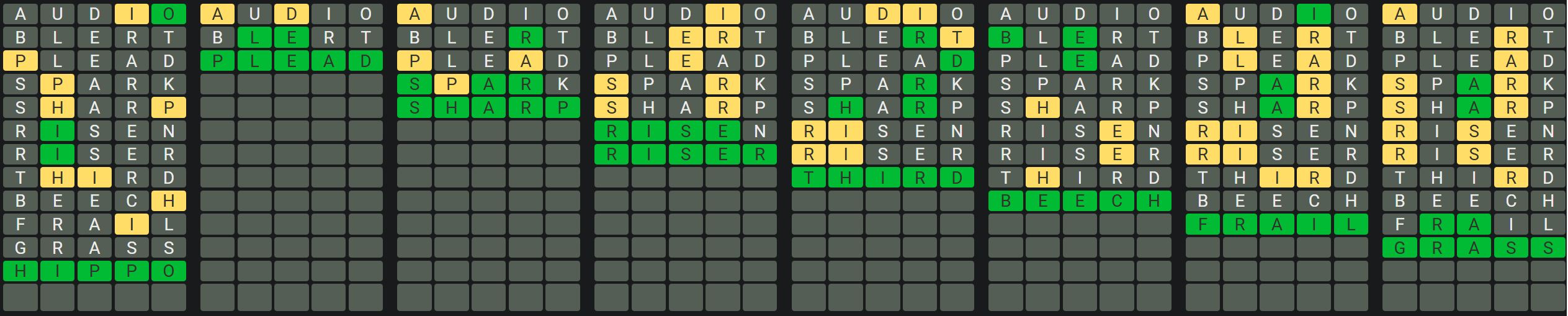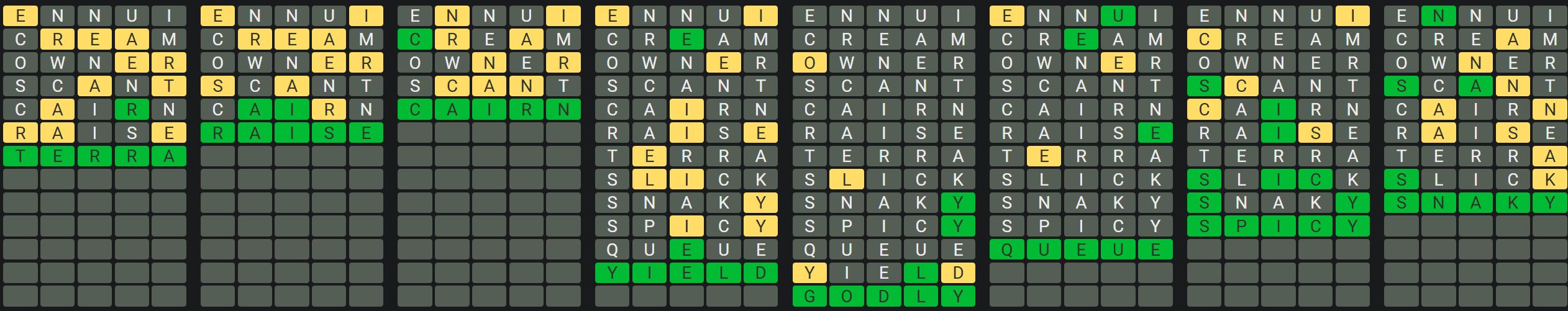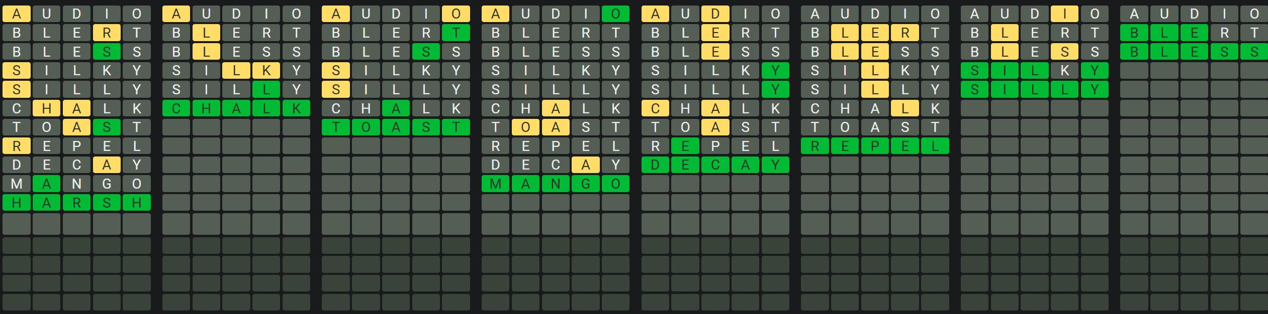 The Sequence Mode is similar to the original Octordle game with the following changes.