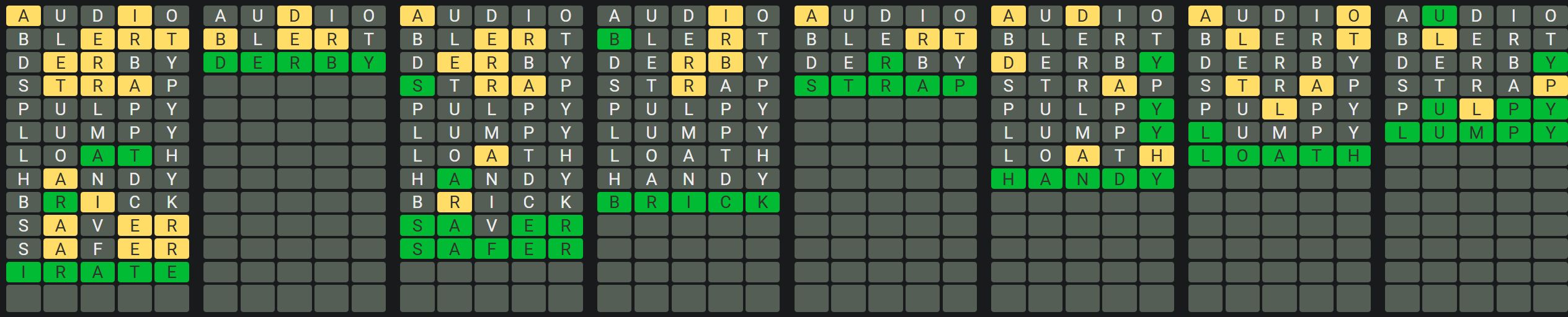 - Only one unsolved word is visible at a time. Once you solve a word, the next board is unlocked.