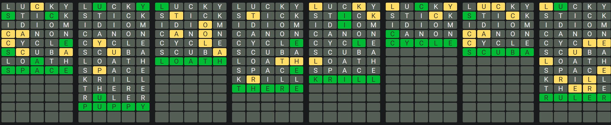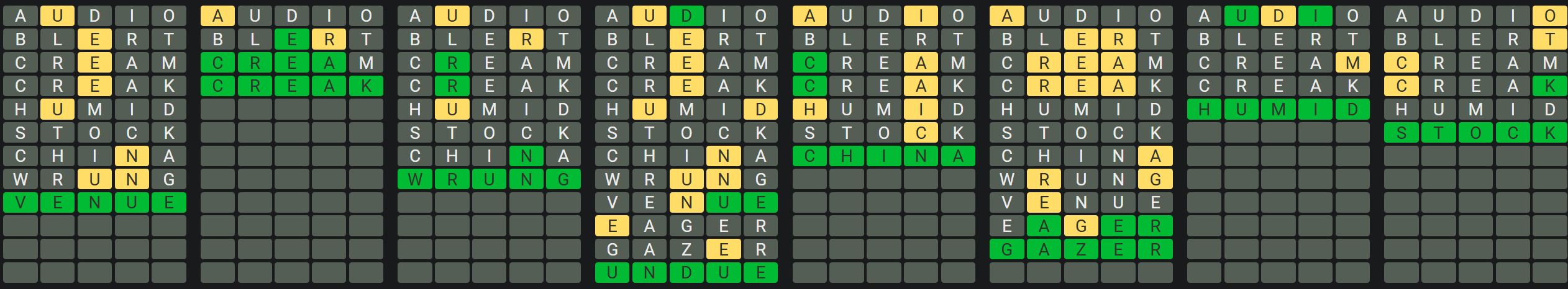 The Sequence Mode is similar to the original Octordle game with the following changes.