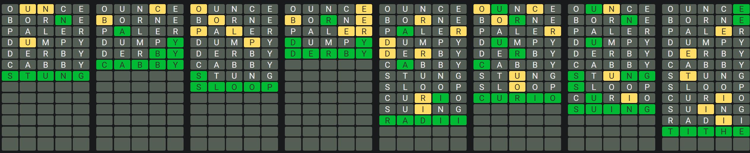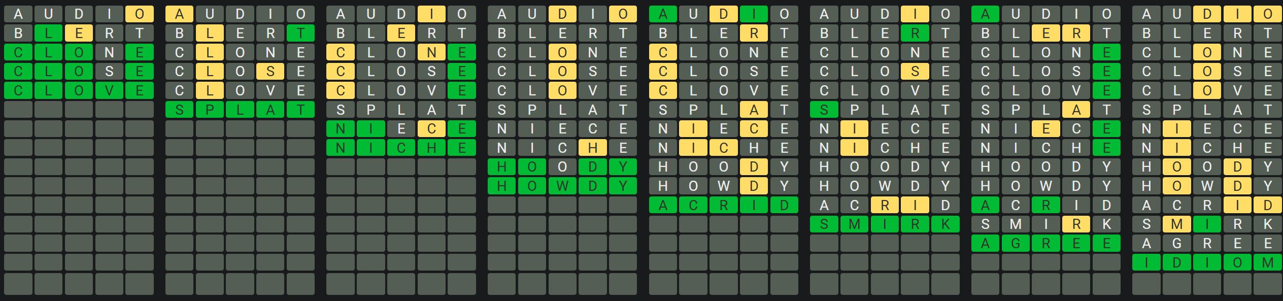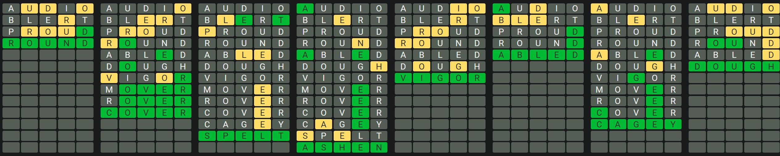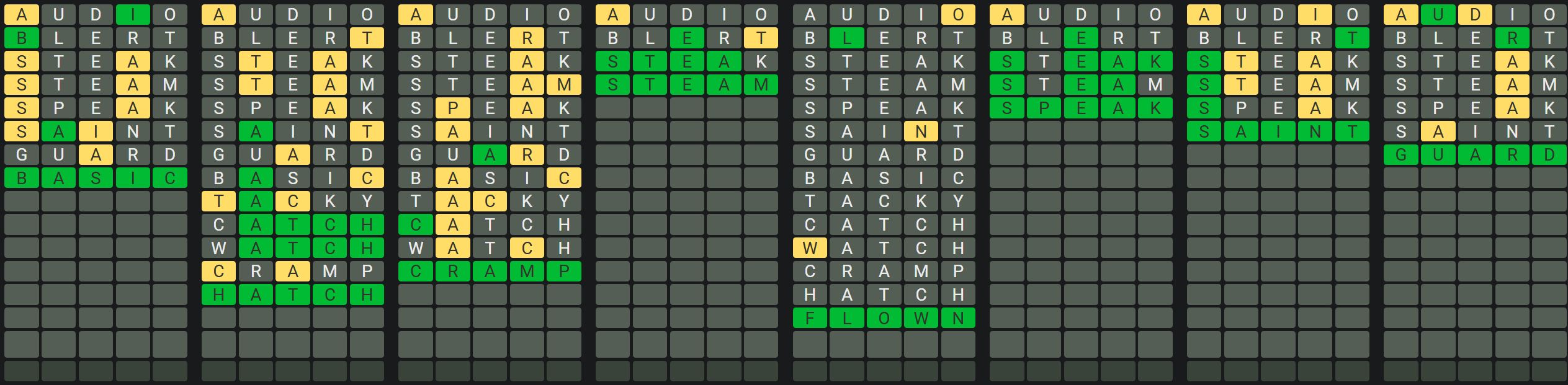The Sequence Mode is similar to the original Octordle game with the following changes.