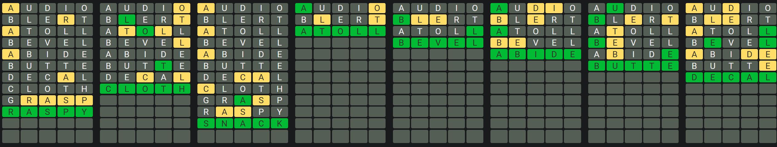 - Only one unsolved word is visible at a time. Once you solve a word, the next board is unlocked.