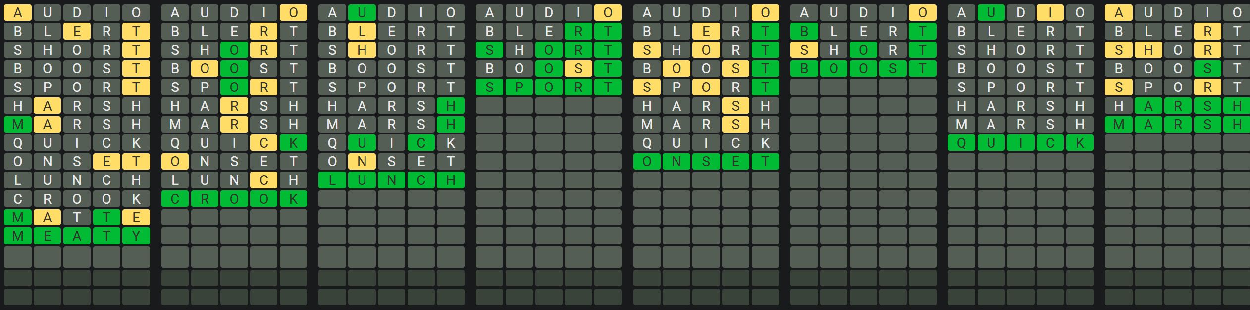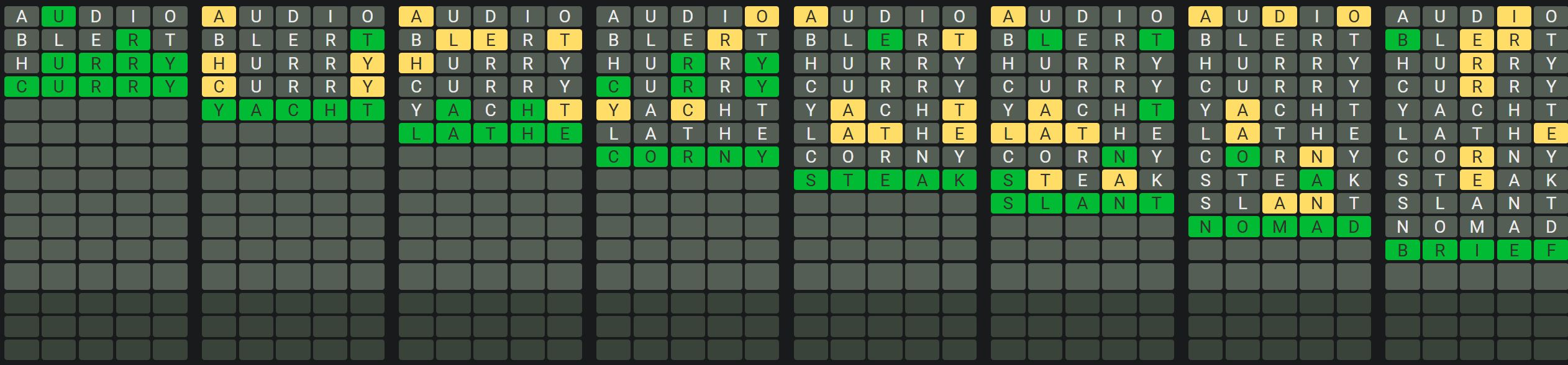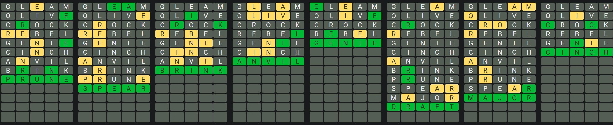 The Sequence Mode is similar to the original Octordle game with the following changes.
