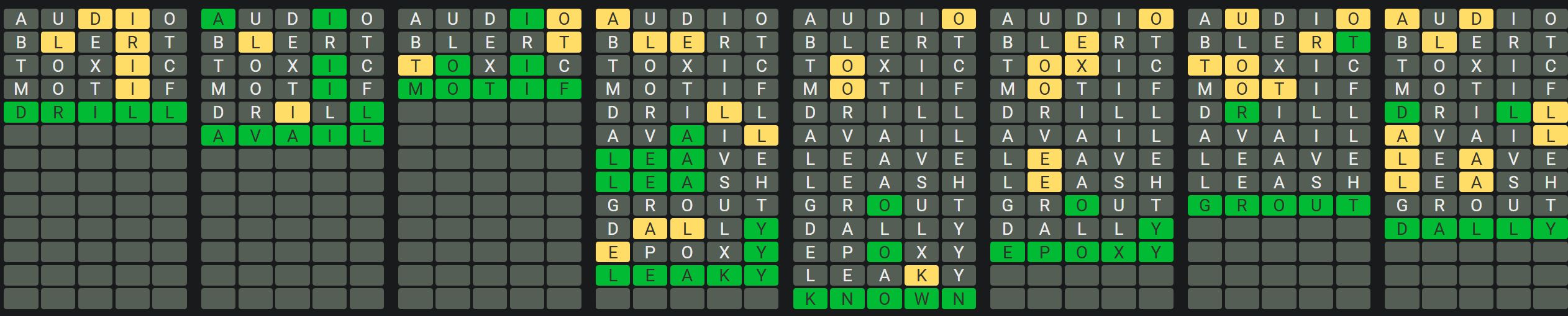 - Only one unsolved word is visible at a time. Once you solve a word, the next board is unlocked.