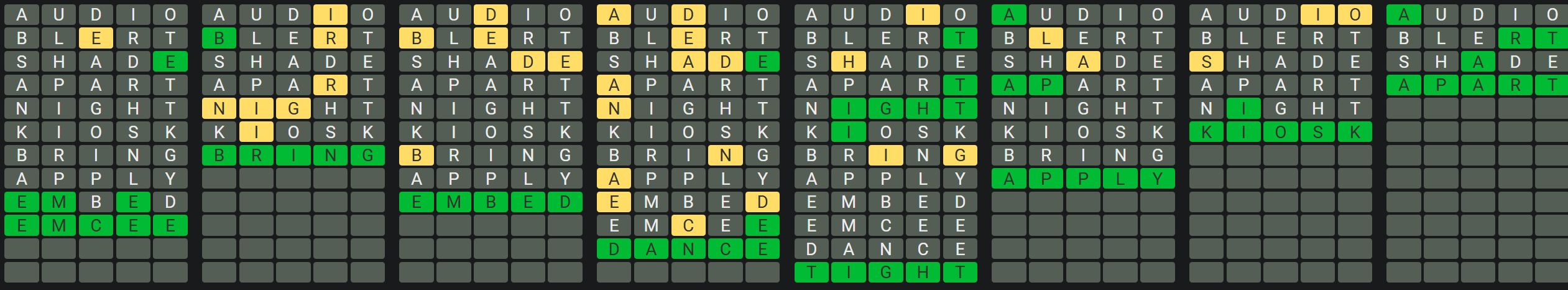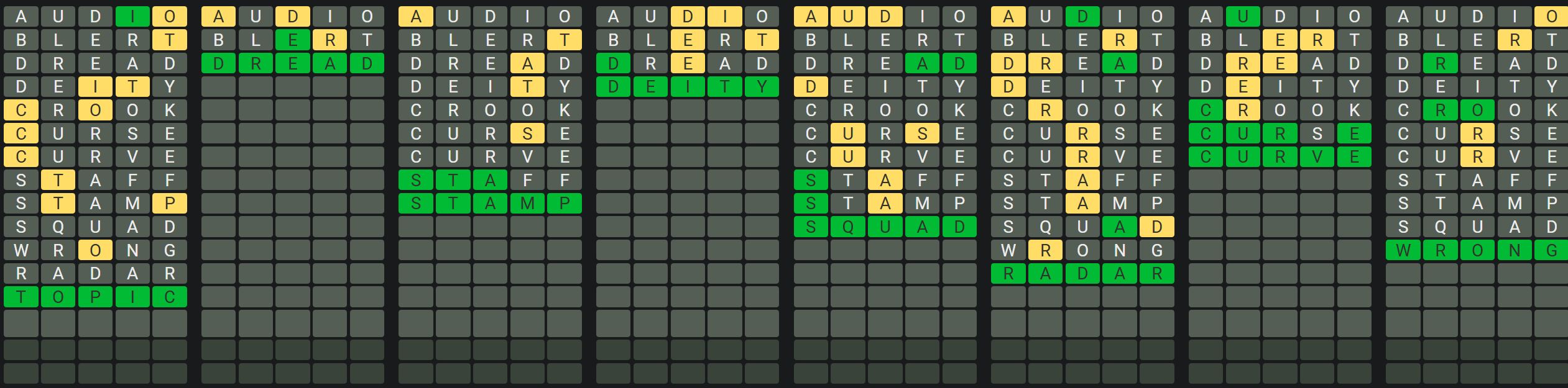 - Only one unsolved word is visible at a time. Once you solve a word, the next board is unlocked.