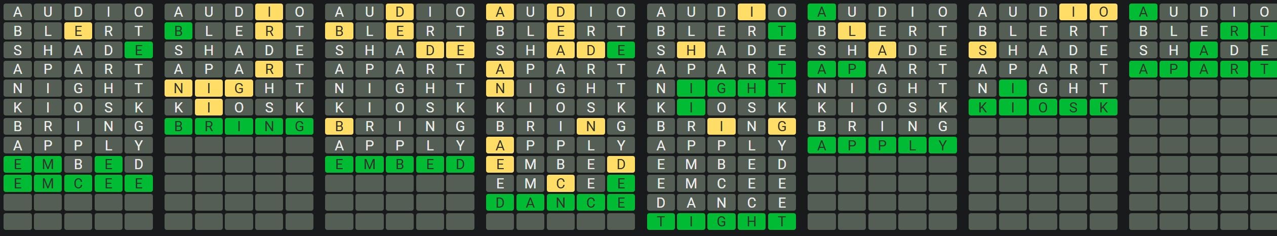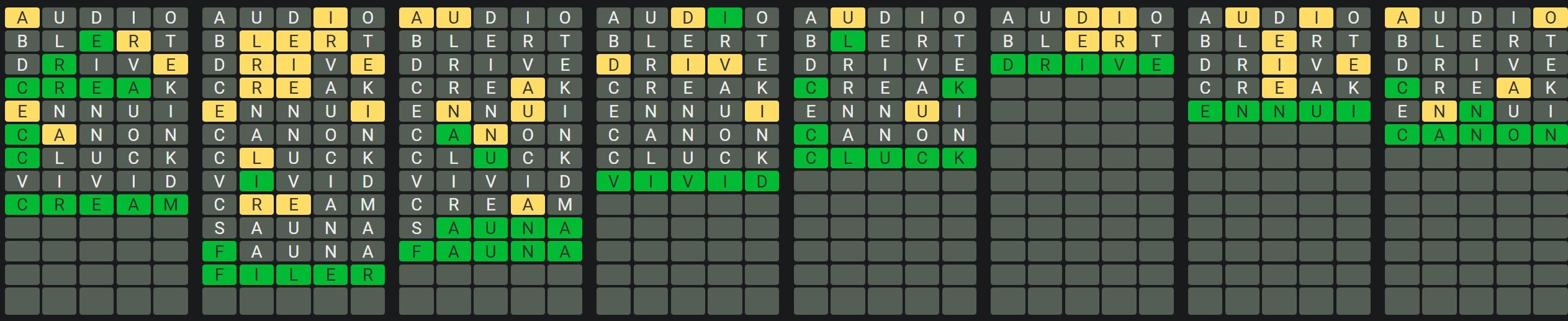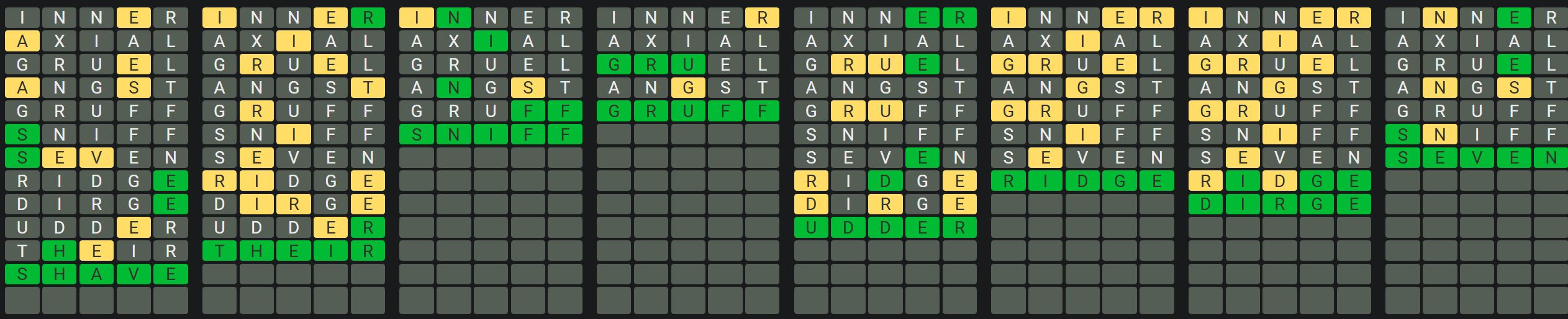 The Sequence Mode is similar to the original Octordle game with the following changes.