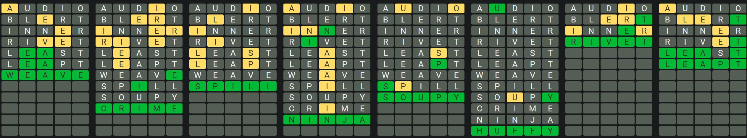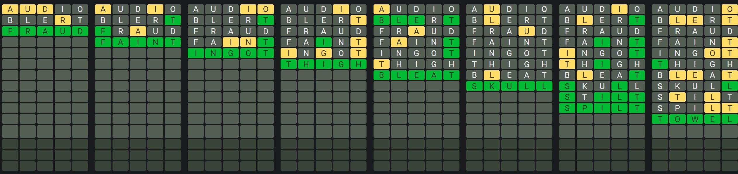 - Only one unsolved word is visible at a time. Once you solve a word, the next board is unlocked.