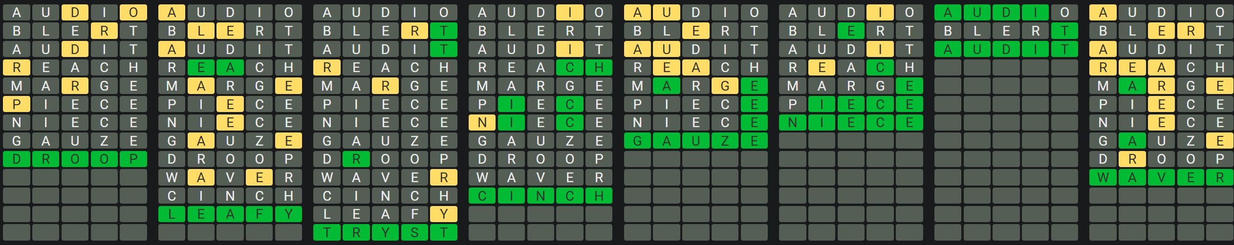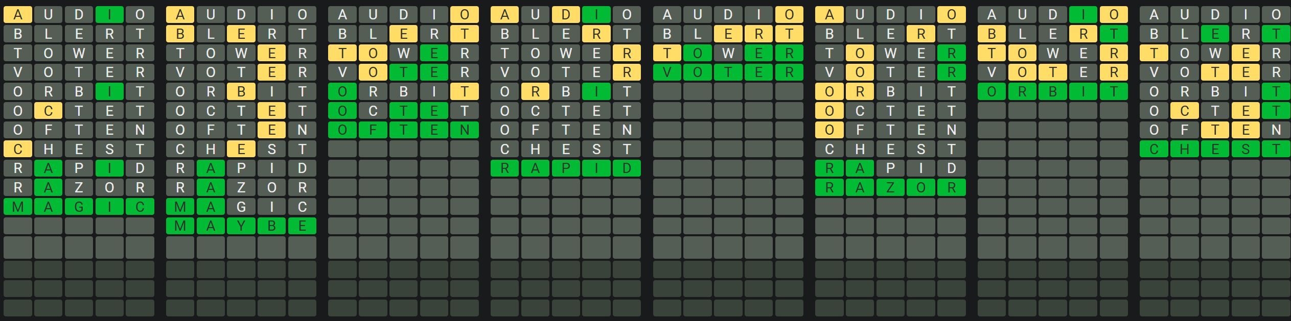 The Sequence Mode is similar to the original Octordle game with the following changes.