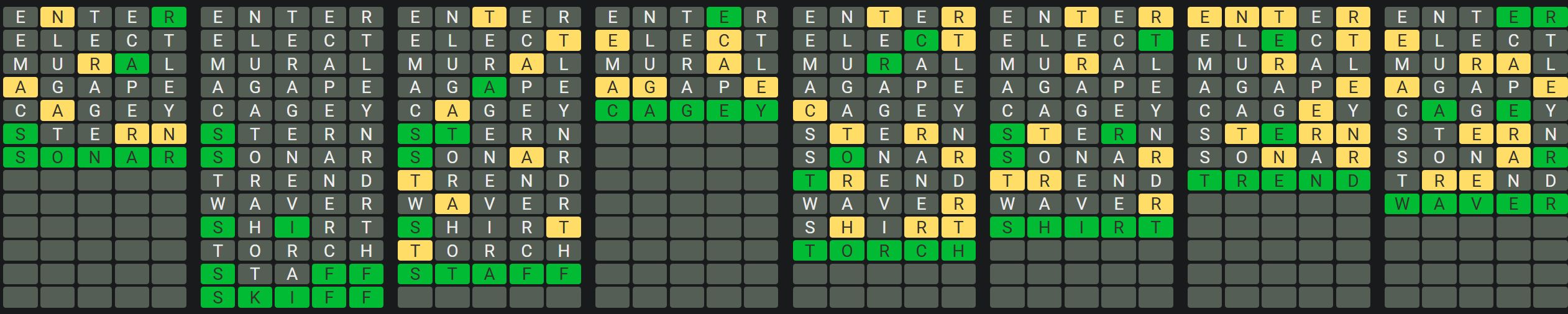 Octordle is a difficult game in which players must guess eight five-letter words at the same time while only having thirteen guesses! The game functions similarly to Wordle in that there are no clues to assist you in guessing the words, but once you have guessed a word, the tiles will change colour.