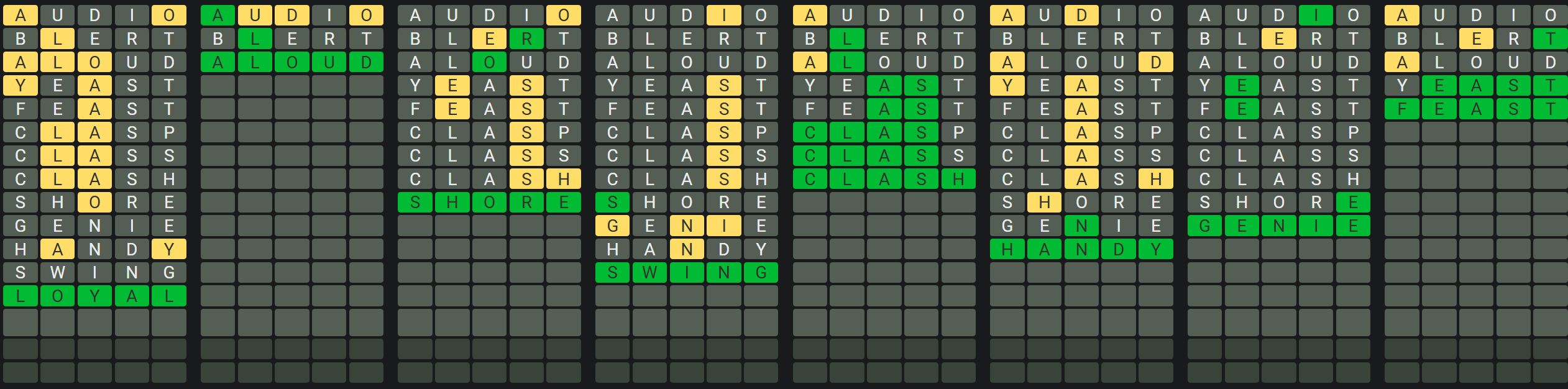 - Only one unsolved word is visible at a time. Once you solve a word, the next board is unlocked.