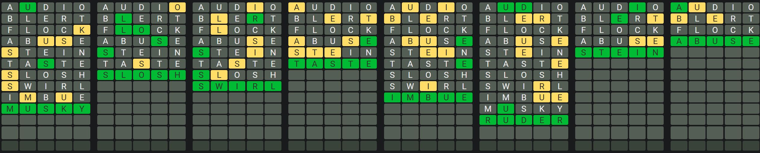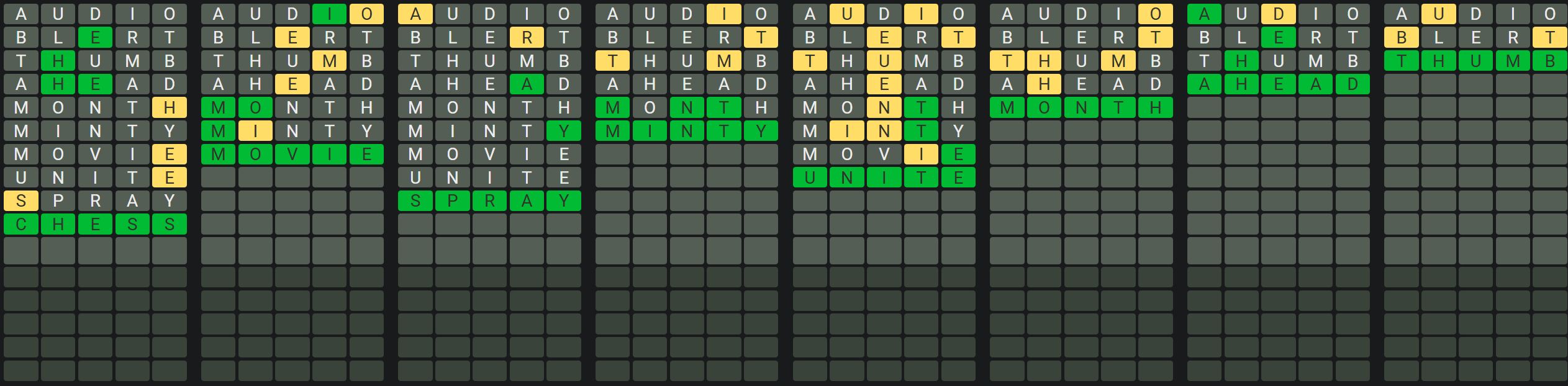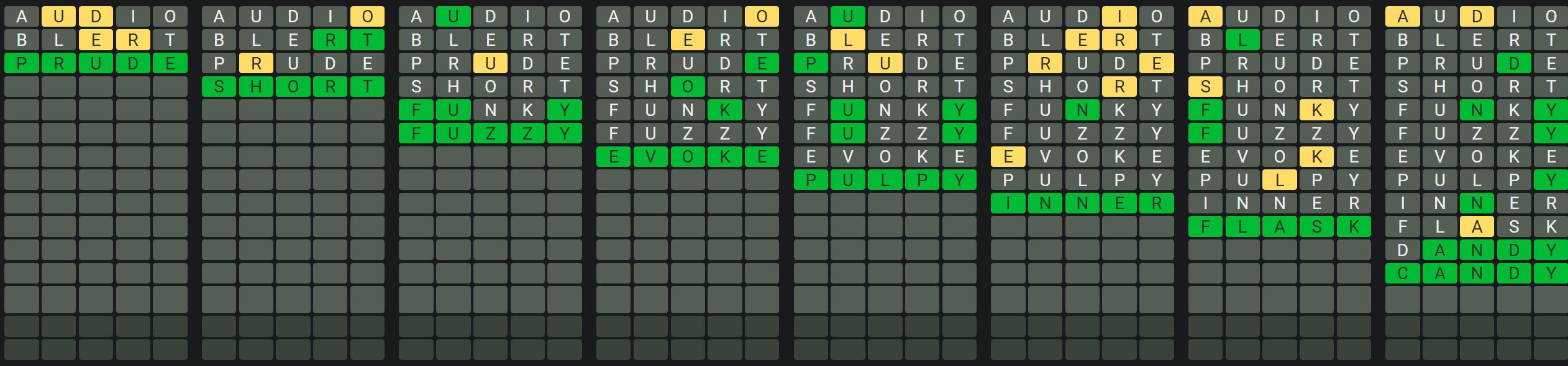 The Sequence Mode is similar to the original Octordle game with the following changes.