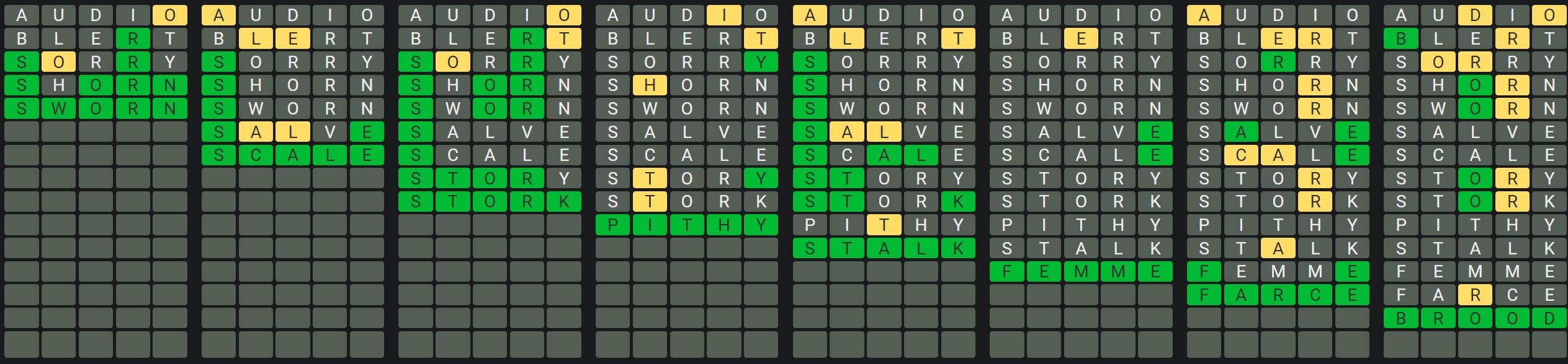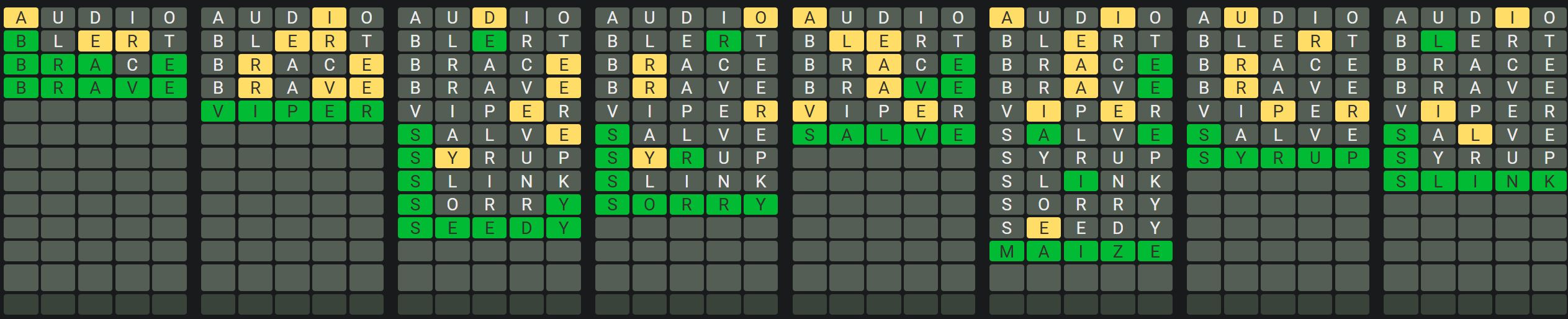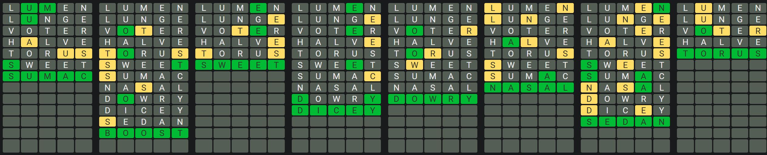 The Sequence Mode is similar to the original Octordle game with the following changes.