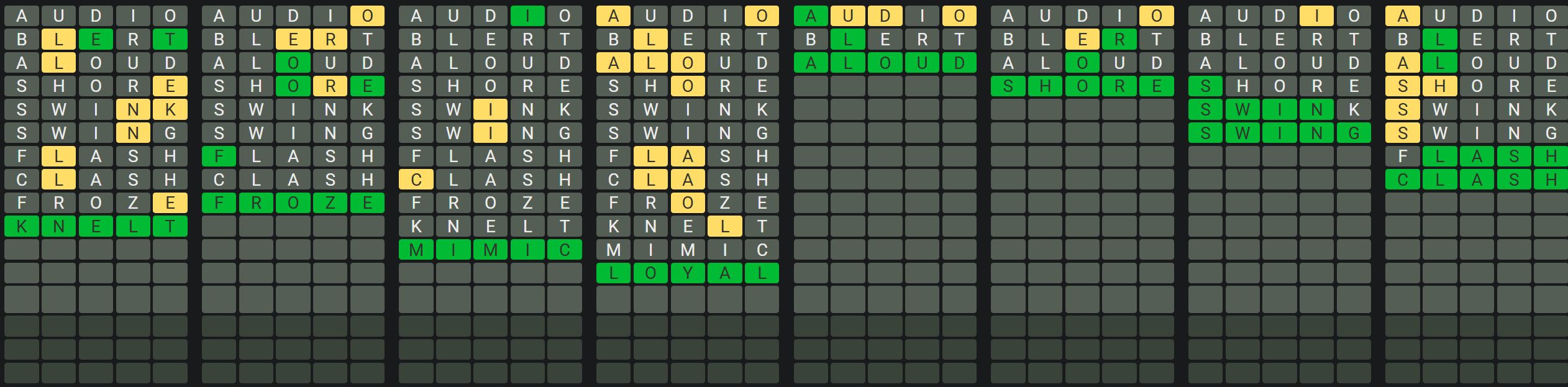 - Only one unsolved word is visible at a time. Once you solve a word, the next board is unlocked.