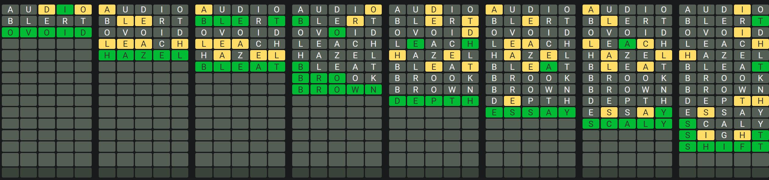 Hint 5: There are no repeated letters in any words today.