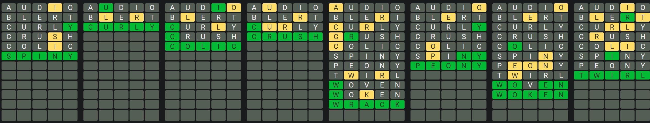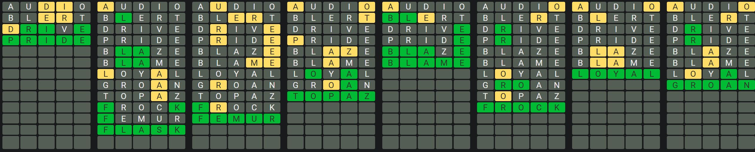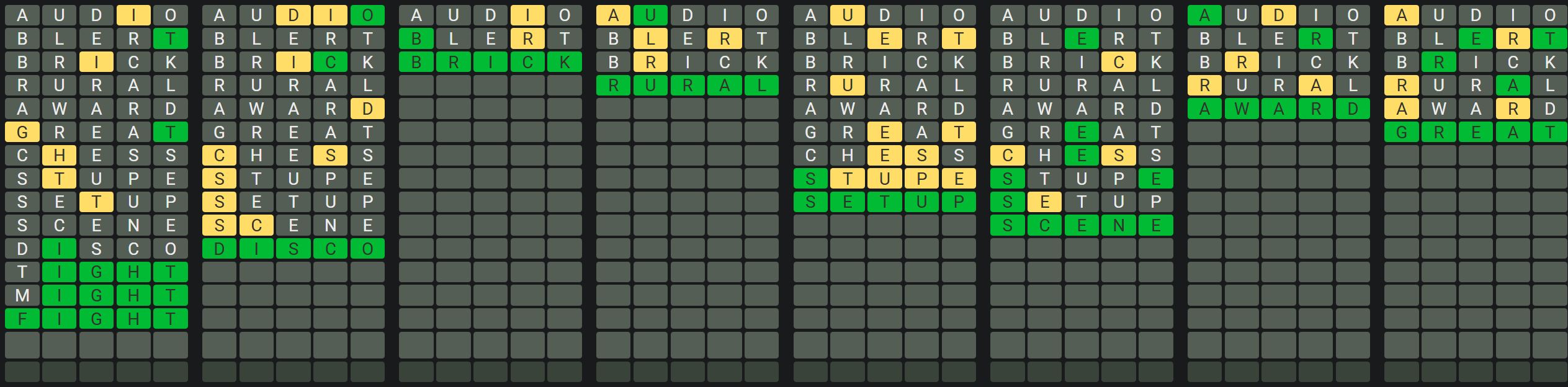 The Sequence Mode is similar to the original Octordle game with the following changes.