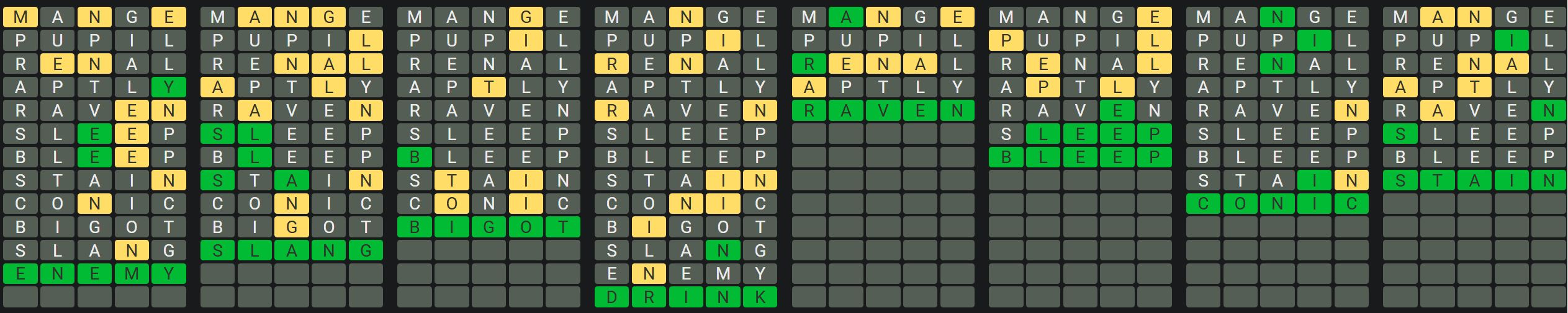 - Only one unsolved word is visible at a time. Once you solve a word, the next board is unlocked.