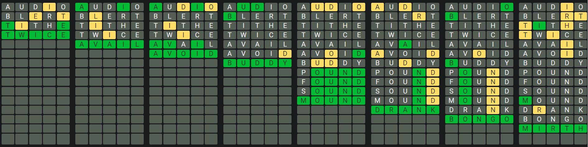 The Sequence Mode is similar to the original Octordle game with the following changes.