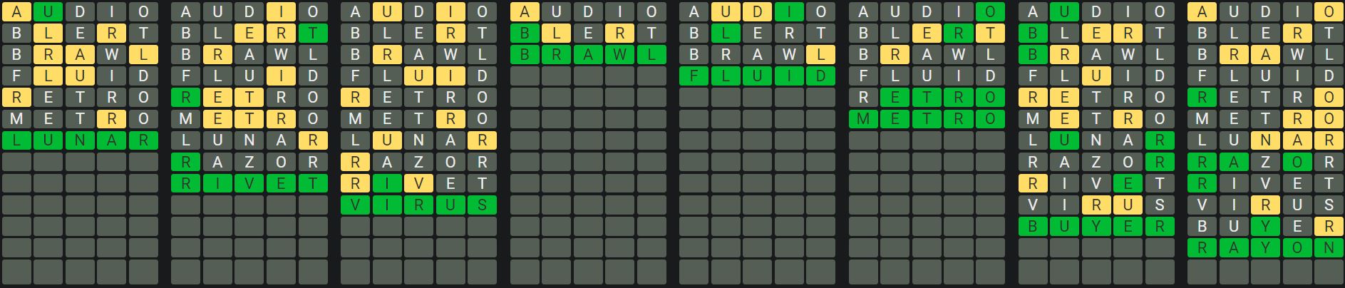 The Sequence Mode is similar to the original Octordle game with the following changes.