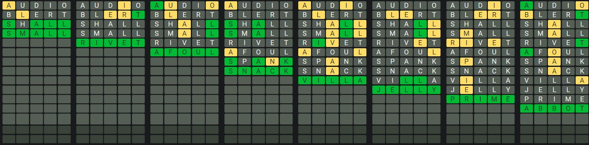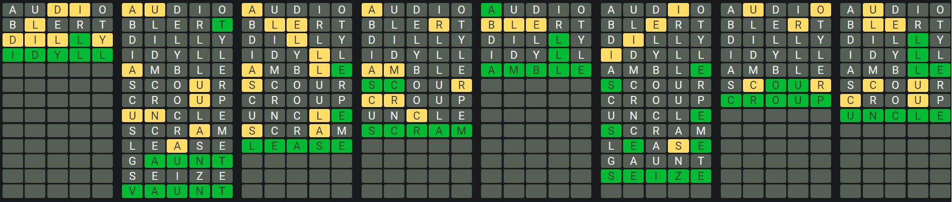 The Sequence Mode is similar to the original Octordle game with the following changes.