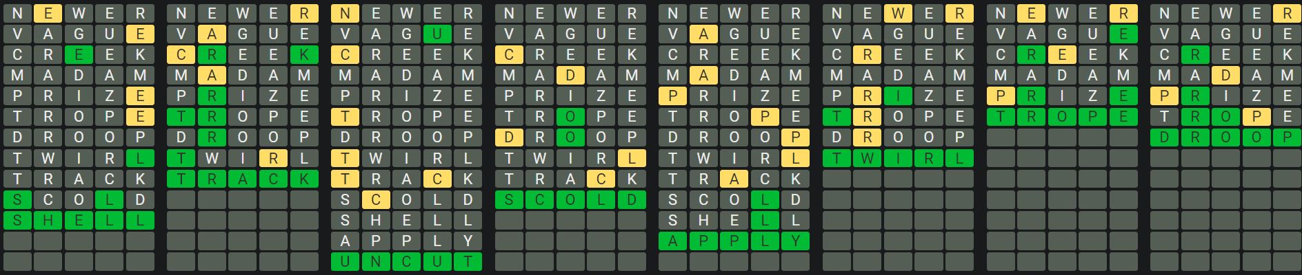 Hint 6: There are no double letters in any words today.