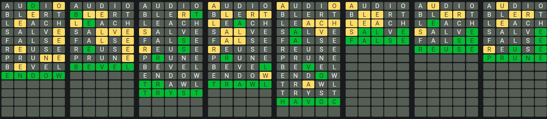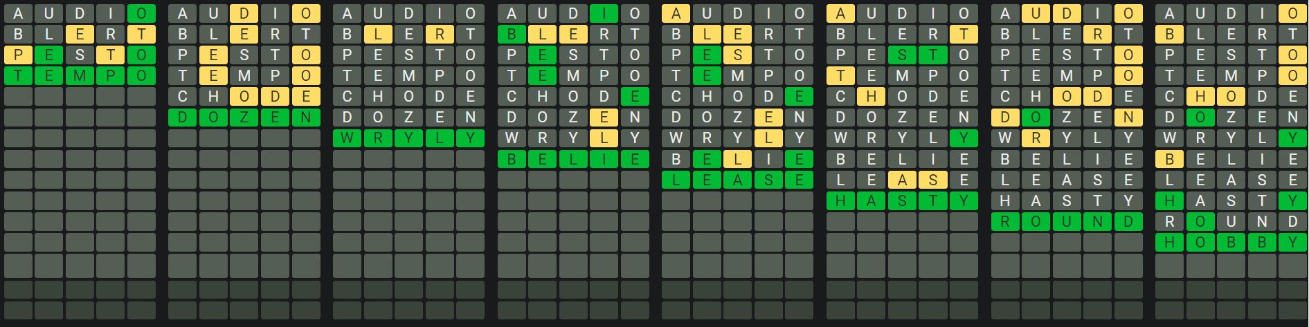 The Sequence Mode is similar to the original Octordle game with the following changes.