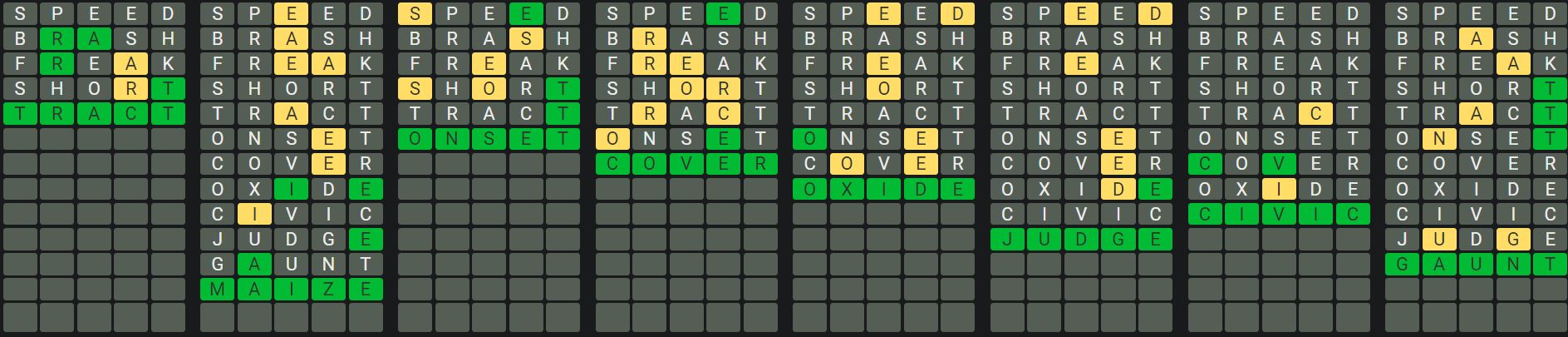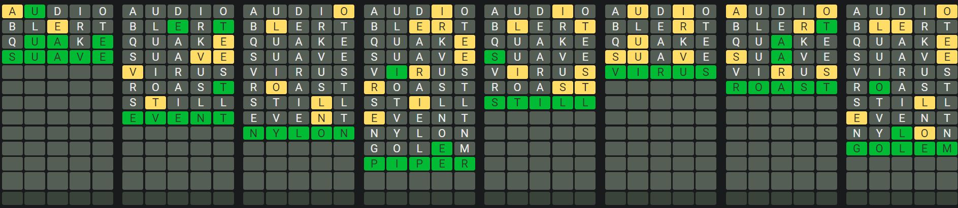 The Sequence Mode is similar to the original Octordle game with the following changes.