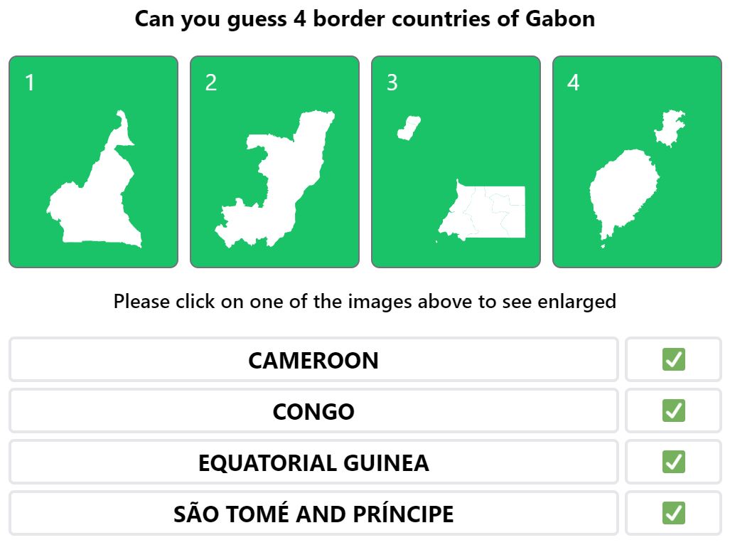 There are four bonus rounds today and the first one is to guess the four countries that border Gabon.