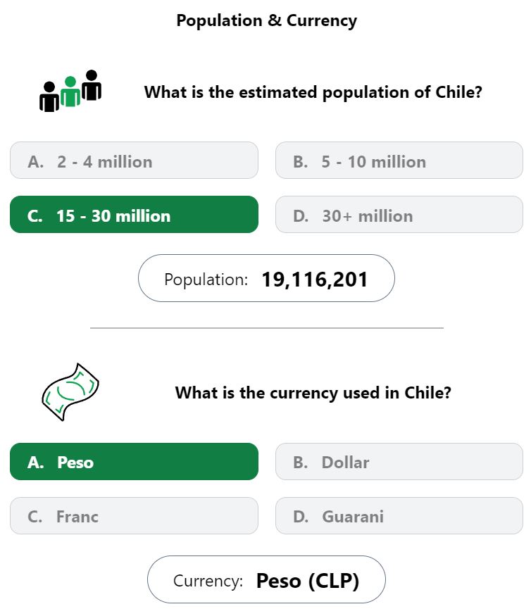 The fifth and final bonus round is to guess the size of Chile and the answer is: