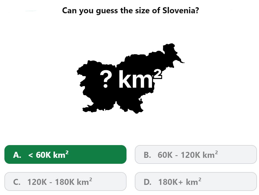 The fifth and final bonus round is to guess the size of Slovenia and the answer is: