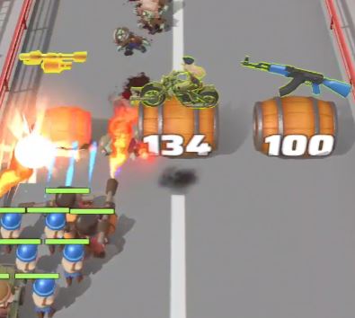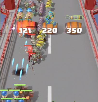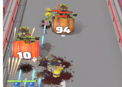 Eliminate the zombies in front of the barrels in the middle and right side and then destroy both barrels, ignoring the “-80” rectangle on the left.