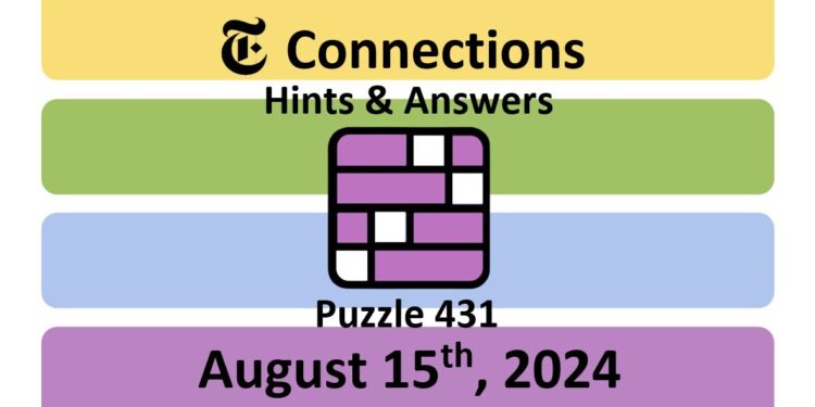 Here are the answers for the New York Times (NYT) Connections puzzle #431 today, released on August 15th, 2024, and some hints to help you solve them.