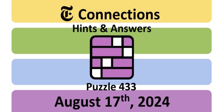 Here are the answers for the New York Times (NYT) Connections puzzle #433 today, released on August 17th, 2024, and some hints to help you solve them.