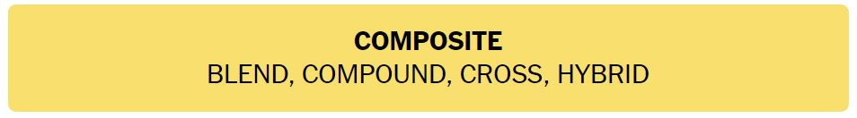 - COMPOSITE – BLEND, COMPOUND, CROSS, HYBRID