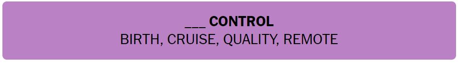 - ___ CONTROL – BIRTH, CRUISE, QUALITY, REMOTE