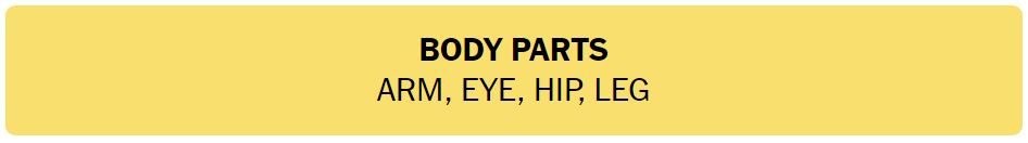 • BODY PARTS – ARM, EYE, HIP, LEG