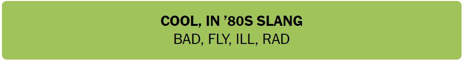 • COOL, IN ’80S SLANG – BAD, FLY, ILL, RAD