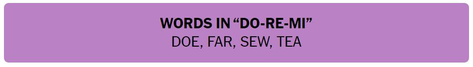 • WORDS IN “DO-RE-MI” – DOE, FAR, SEW, TEA