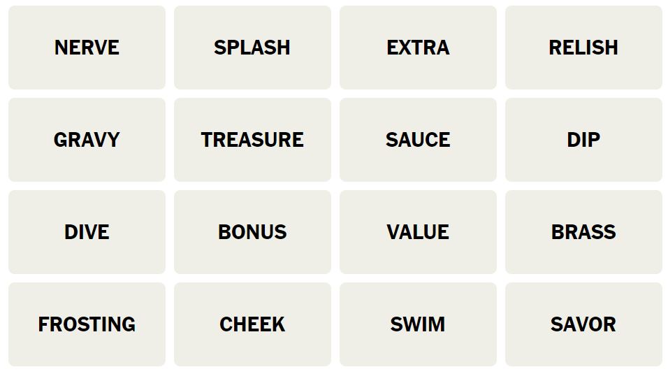 There are sixteen words for the Connection puzzles, which are: