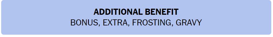 • ADDITIONAL BENEFIT – BONUS, EXTRA, FROSTING, GRAVY