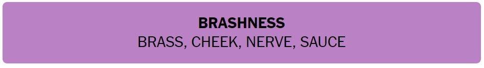 • BRASHNESS – BRASS, CHEEK, NERVE, SAUCE
