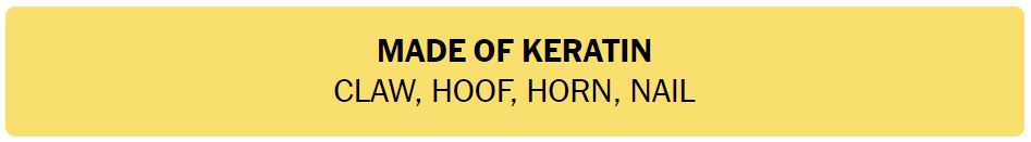 - MADE OF KERATIN – CLAW, HOOF, HORN, NAIL