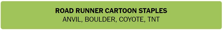 - ROAD RUNNER CARTOON STAPLES – ANVIL, BOULDER, COYOTE, TNT