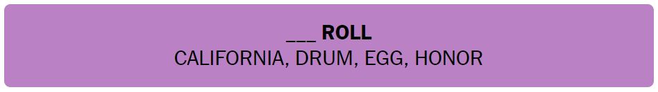- ___ ROLL – CALIFORNIA, DRUM, EGG, HONOR