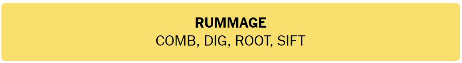 - RUMMAGE – COMB, DIG, ROOT, SIFT
