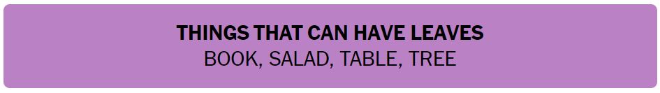 - THINGS THAT CAN HAVE LEAVES – BOOK, SALAD, TABLE, TREE