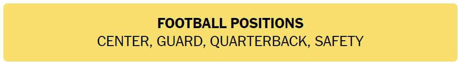• FOOTBALL POSITIONS – CENTER, GUARD, QUARTERBACK, SAFETY