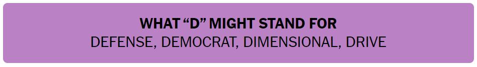 • WHAT “D” MIGHT STAND FOR – DEFENSE, DEMOCRAT, DIMENSIONAL, DRIVE