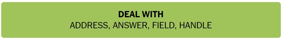 • DEAL WITH – ADDRESS, ANSWER, FIELD, HANDLE